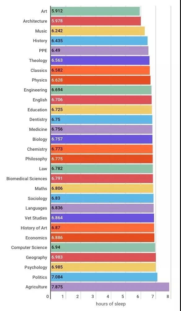 Tab網站之前做了一個英國大學各專業睡眠時間的調查,超過4000人參與了調查。