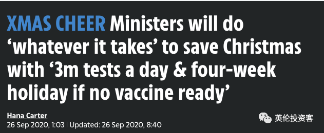 《每日快報》稱,政府仍寄希望于未來每天進行300萬次新冠測試,并在12月前推出疫苗。