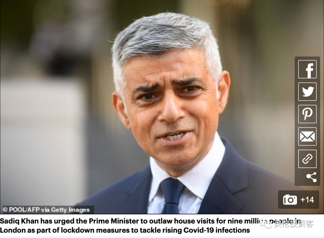 周六(9月26日),他再次敦促首相鮑里斯加強對倫敦的封鎖,趕快推出禁止民眾與其他家庭會面的新政策。