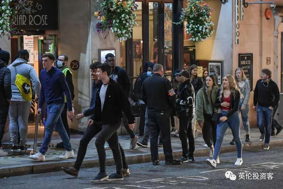 晚十點的酒吧餐廳宵禁政策已經實施了兩天,倫敦的酒吧夜店關門后,喝得迷迷糊糊的人們一起涌向街道和地鐵,繼續狂歡。
