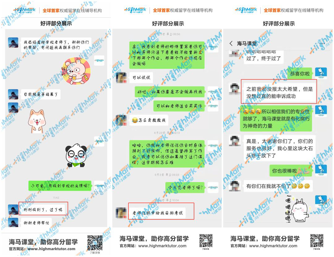 為了增加Appeal成功的幾率,同學(xué)們可以在第一時(shí)間咨詢海馬課堂的學(xué)習(xí)規(guī)劃師哦,我們有專業(yè)的精英導(dǎo)師團(tuán)隊(duì),會針對每一名學(xué)生的具體情況為同學(xué)們量身定制申訴服務(wù),幫助同學(xué)們繼續(xù)學(xué)業(yè)。
