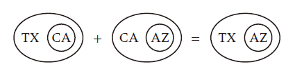 我們?nèi)绾翁崛〕霰WC(3)中論證有效性的東西?一個(gè)策略是通過(guò)分析其中“大于”關(guān)系的固有性質(zhì)。因?yàn)闊o(wú)論A,B和C是什么,如果A大于B,并且B大于C,則A將大于C。最后一步是用“Texas”,“California”和“Arizona”替換A,B,和C。