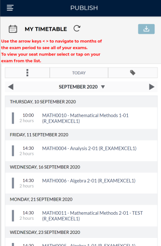 若你希望查看4月和5月的所有考試,請使用頁面上的導(dǎo)航按鈕,切換月份。