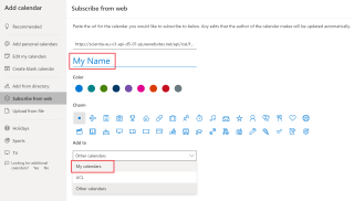 訂閱功能默認(rèn)將考試日歷添加到“Other calendars”(其他日歷)分組中。