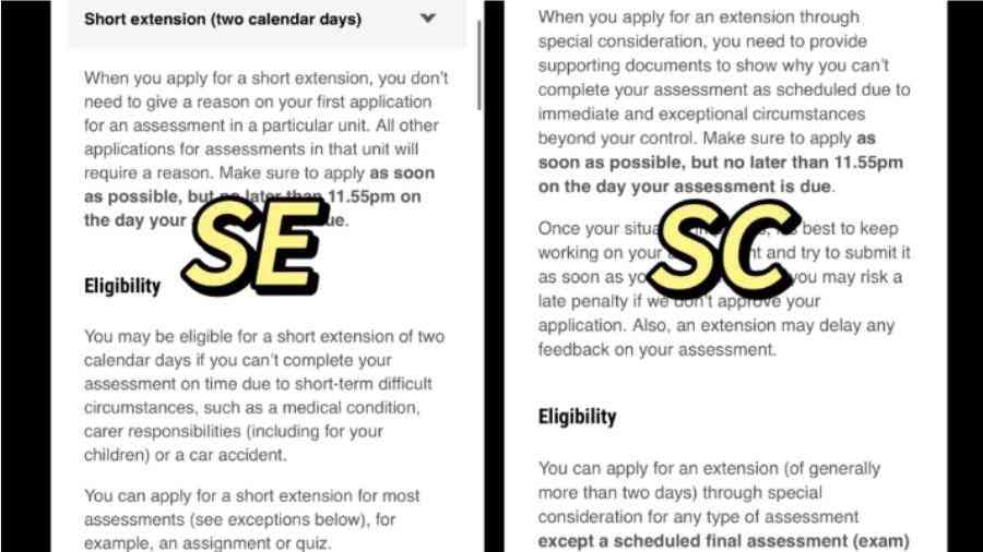 莫納什大學還在傻傻分不清SE和SC的同學,本文將會為大家詳細講解清楚。莫納什大學的延期一般是分為2種:SE+SC。 什么是SE 適用范圍:個人作業 essay類[Final考不適用]; 申請截止時間:至多不能晚于d